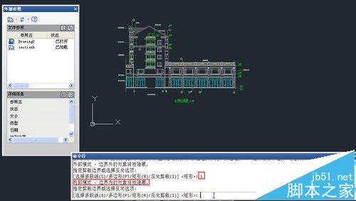 1、輸入XCLIP命令,回車,選擇外部參照后回車,采用默認選項<新建邊界>,回車,此時會提示我們是否刪除舊邊界,如下圖所示。