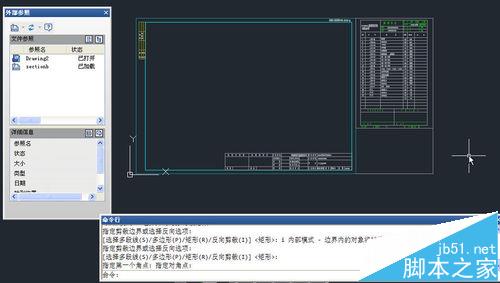 所謂反向裁剪,就是將邊界內部的圖形裁剪掉,而保留邊界外的部分,如果我們需要在劊或外部參照上局部開一個窗口的時候,可以使用反向裁剪。我們繼續用上面的例子來進行練習。
