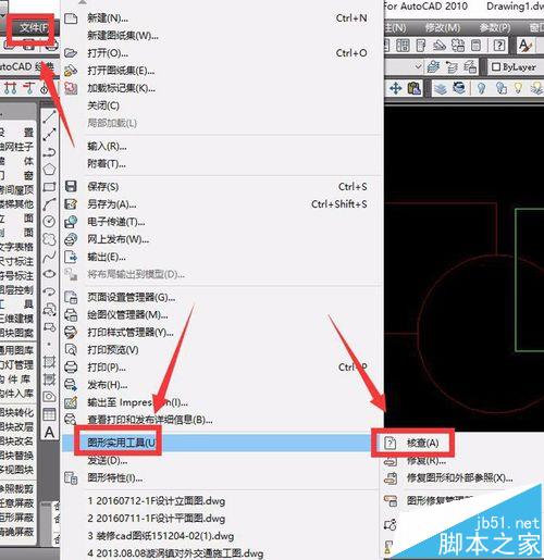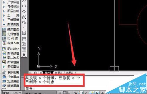 2、其次,仍然是在在菜單欄找到“文件”/“圖形實用工具”/“核查”,檢查要分解的cad文件是否有錯誤,如果有錯誤,重新按照“文件”/“圖形實用工具”/“修復(fù)”進(jìn)行修復(fù)即可,如圖,(根據(jù)命令提示操作即可),修復(fù)完成之后,嘗試分解要分解的cad文件,如果可以直接分解,問題即表示得到解決,若還是沒解決,請繼續(xù)往下看