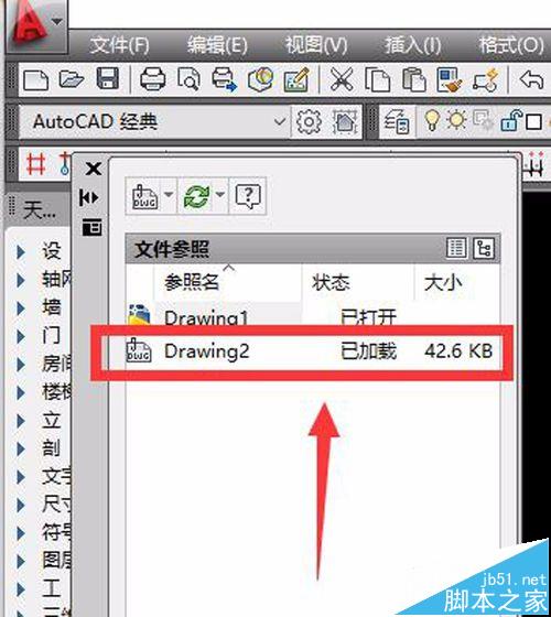1、首先,,打開要做分解的cad文件,在菜單欄找到“插入”/“外部參照”,點擊“外部參照”打開“文件參照編輯器”,檢查要被分解的文件是不是在外部參照文件中,如果確實在外部參照文件中,只能找到外部參照文件,才能實現(xiàn)cad文件分解,如圖,小編的cad文件參照的是drawing2,打開drawing2即可實現(xiàn)分解。若不是, 請接著看