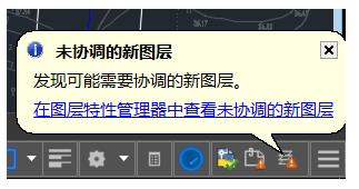 在CAD中,有時打印會遇到“存在未協調的新圖層”的警告,如下圖所示,下面我為大家分享一下原因和解決辦法。當您附著外部參照或插入塊時,可能會添加新圖層。如果添加了新圖層,這些新圖層就是未協調的新圖層,系統將在圖層管理器中自動創建“未協調的新圖層”過濾器,在執行打印操作后,將會彈出警告對話框、狀態欄顯示氣泡,以引導你檢查這些新添加的圖層。