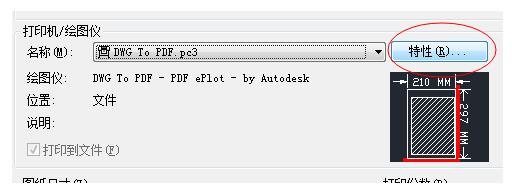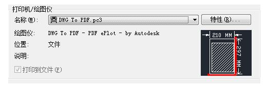 2、在【打印機/繪圖儀】組合框內選擇打印機或繪圖儀名稱。單擊【特性】,打開【繪圖儀配置編輯器】對話框。
