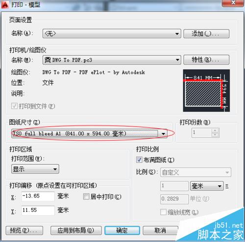 打印圖紙,預覽圖形時四周有白邊?【打印比例】設置為1:1,預覽圖形時顯示不全?勾選【布滿圖紙】復選框,比例不正確?我想,這就是所選圖紙可打印區域與圖框尺寸不相符的問題。