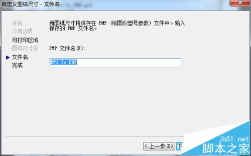 4、輸入【PMP文件名】,單擊【下一步】,單機【完成】關閉【自定義圖紙尺寸】對話框。單擊【確定】關閉【繪圖儀配置編輯器】對話框。自動彈出【修改打印機配置文件】對話框。選擇【將修改保存到下列位置】復選框,單擊【確定】關閉對話框。