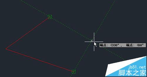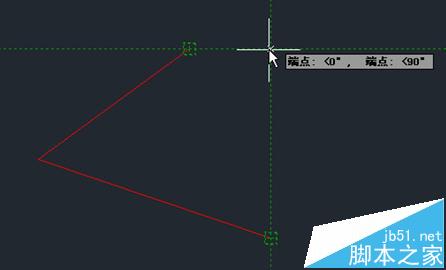 3、過追蹤兩個捕捉點的極軸交點,得到與兩個捕捉點對齊的點。如下圖所示。