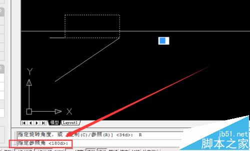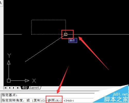 2、然后選中一個基點,如圖所示,命令版上會出現命令,我們選擇R,空格,如圖所示