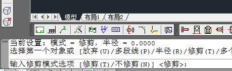 2、輸入T后,命令框如下:修剪 和不修剪,修剪就是去掉原有的線,不修剪就保留原有的線。