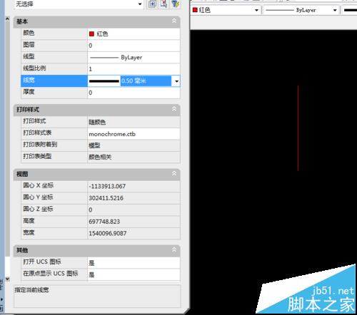 3、在特性對話框中,選擇線寬,如我選擇0.5mm,那線段則顯示寬度為0.5mm。