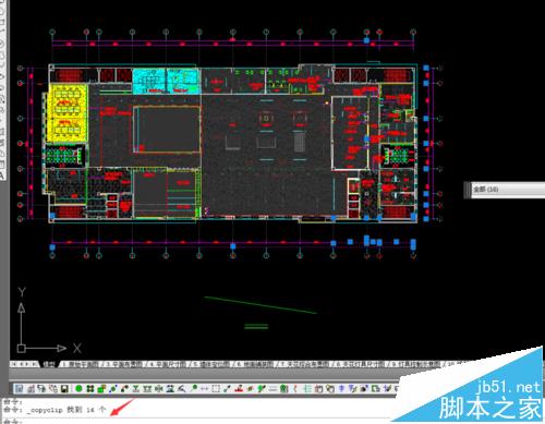 2、選中小區域的圖形進行復制,看能選中的圖形能否復制成功。通過下圖可以發現選中16個圖形,Ctrl+C的時候復制成功。命令行顯示“顯示命令: _copyclip 找到 16個”,證明是圖形中的某條線或者圖塊有問題,找到引起問題的圖形,自己新畫圖形代替就可以復制了。