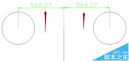 2、對于圓關于直線對稱的繪制,我們最笨的方法也就是最原始的方法就是在直線兩側分別畫圓形,圓心到直線的距離均相等即為對稱。