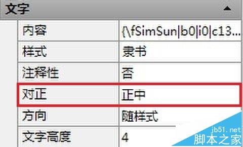 2、選擇多行文字,點開特性,把多行的對正選項更改為正中