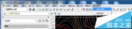 1、運行“CAD2008”,進入工作界面,將要切剖面的地形圖打開。單擊cad的菜單中的“工具”,選擇下級菜單“加載應用程序”,跳出加載應用程序對話框(也可以在命令行中輸入“appload或ap”,也可以打開加載應用程序對話框)。