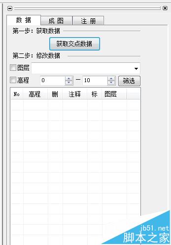 5、切換到插件界面“數據”一欄,點擊“獲取交點數據”,選擇地形圖中已畫好的剖面勘探線。