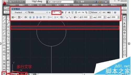 4、接著點多行文字(A)圖標,在圓中拖一個矩形,如圖所示