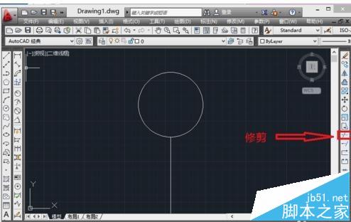 3、然后快捷鍵ctrl+a全選,tr修剪,去掉圓中多余的線