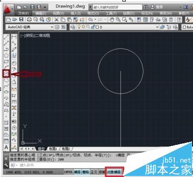 2、如圖所示,打開對象捕捉,在端點處畫圓