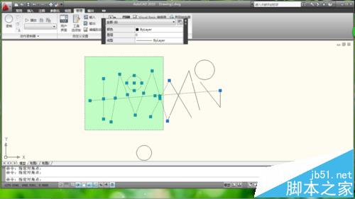 樞選(一):拖動鼠標,從左側往右拉,只有完全在方框內的線條才能選中,方框外的則無法選中。