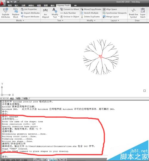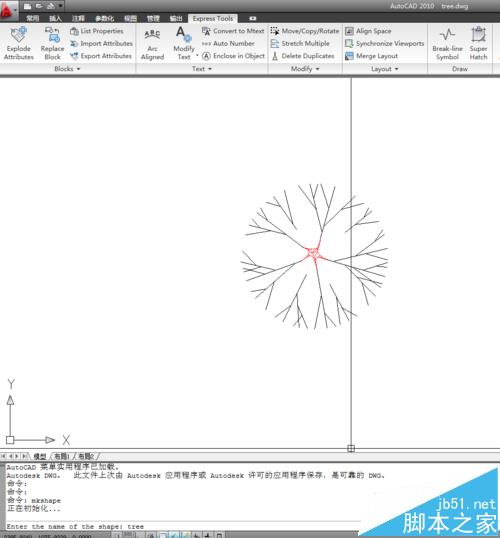 4、上一步保存完成后,看命令行提示:Enter the name of the shape:,我這里輸入shape的名字tree.然后回車進(jìn)行下一步。
