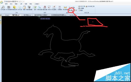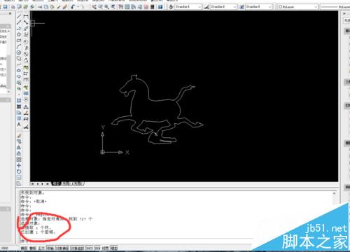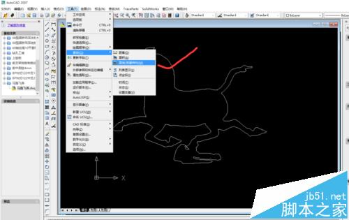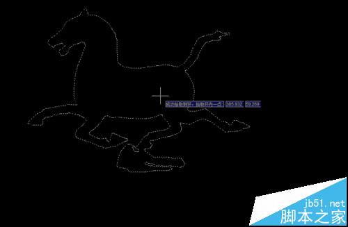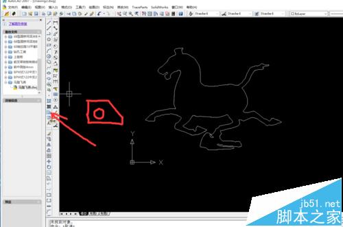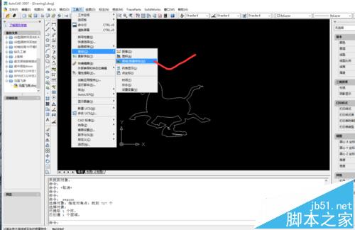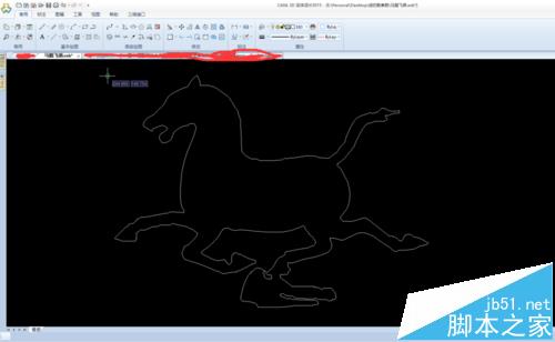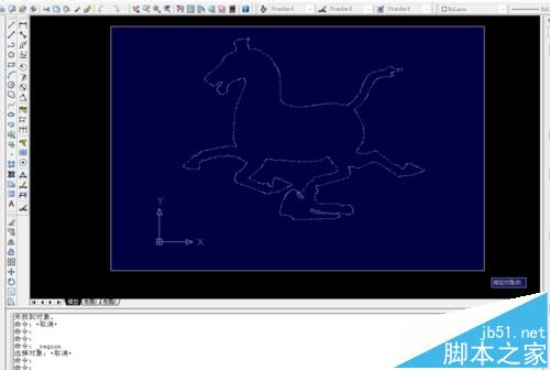 2、這是一個馬踏飛燕的平面模型文件。看起來比較復雜,用普通劃線確定重心是不可能的。下面就用cad2007查詢命令里面的面域/質(zhì)量特征命令來查找圖形的重心。