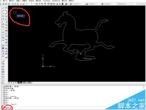 3、第一步要生成一個面域,如果你的圖形已經(jīng)是一個面域可以跳過這一步驟。