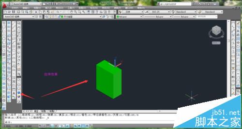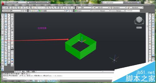 1、我們先使用長方形命令繪制一個長方形,調整到等軸測圖模式,選擇三維建模中的拉伸,指定高度,著色后效果如圖所示,生成需要的實體。