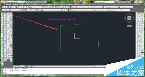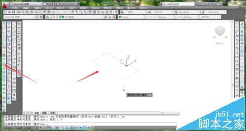 2、將該圖形刪除,我們重新使用直線命令繪制一個任意圖形,使其封閉。再使用拉伸命令,選擇繪制的相連線,指定高度,生成效果如圖是一個片體。