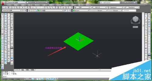 4、想解決這個問題,我們先要將需拉伸的封閉區域做成一個面域,如圖所示選擇面域,選取封閉的所有線條,生成面域后再進行拉伸,效果如圖產生實體。