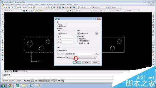 6、回到寫塊命令,點下面的確認(rèn)按鈕。即另外保存OK.