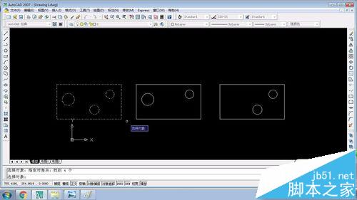 1、打開一個CAD圖檔,文檔里面有3個不同的零件圖,我現(xiàn)在需要把其中的一個圖單獨保存為一個文檔。