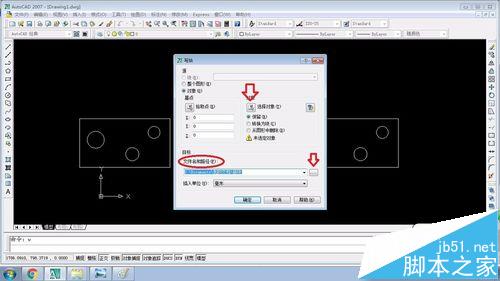 3、確認(rèn)后出現(xiàn)一個對話框,這是寫塊命令框,內(nèi)有一些需要選擇的命令。
