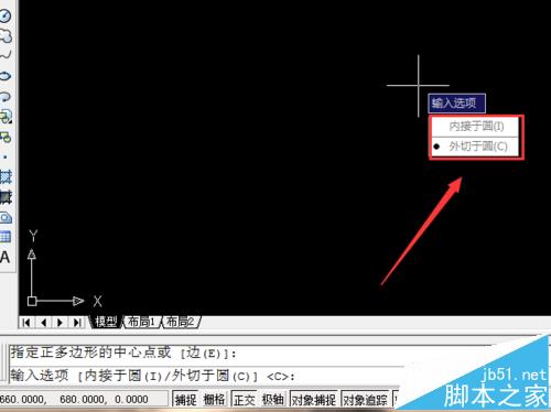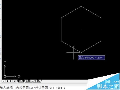 5、之后在鼠標(biāo)光標(biāo)處這里會(huì)出現(xiàn)“內(nèi)接于圓”或者“外切于圓”的提示,根據(jù)需要我們選擇其中一個(gè),然后輸入圓的直徑,再點(diǎn)擊回車鍵。