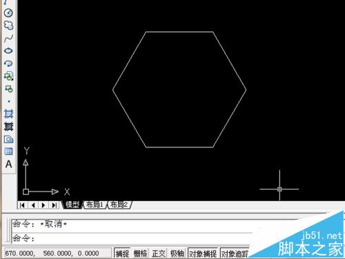 7、下圖是調(diào)整之后的正六邊形的圖像,因?yàn)楫?huà)的是跟水平方向平行的正六邊形,調(diào)整方向時(shí)我們直接打開(kāi)正交就可以了。