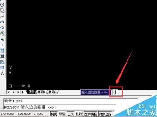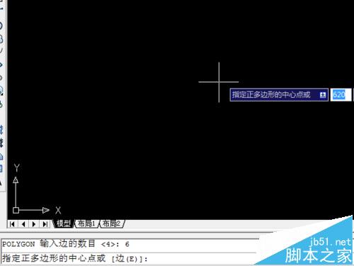3、點(diǎn)擊多邊形的圖標(biāo)或者它的快捷命令后,因?yàn)槲覀儺?huà)的是正六邊形,所以在下方命令欄中的“輸入邊的數(shù)目”這里我們輸入數(shù)字“6”,然后按“enter”鍵。