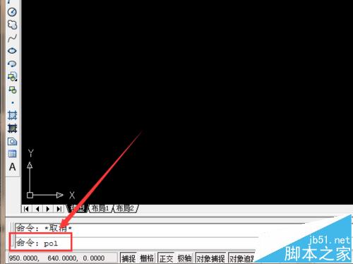 2、如果我們的CAD左側(cè)沒(méi)有顯示工具欄,我們也可以在下方的命令欄中輸入“pol”字母,該字母為多邊形的快捷命令。