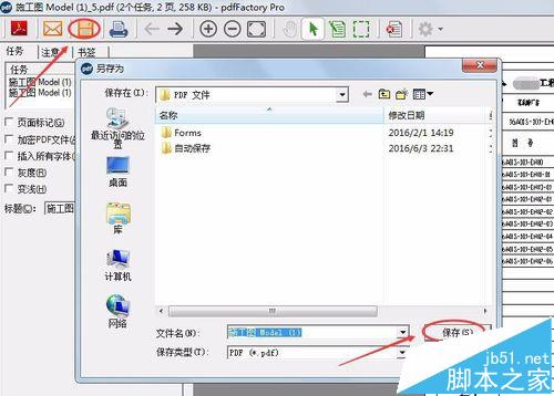 9、點擊界面中的保存圖標,彈出對話框,選擇保存的地房,改好文件名后,點擊保存,就將多張CAD圖紙打印成為一個PDF文件。