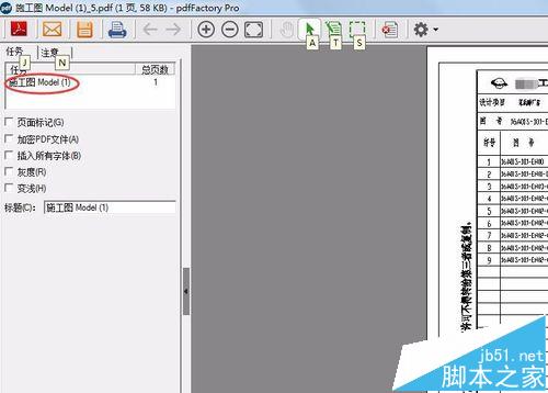 5、彈出一個剛打印出來的PDF文件,可以看到左邊的任務下有一張圖紙,暫時先不保存,也不要把它關閉了。