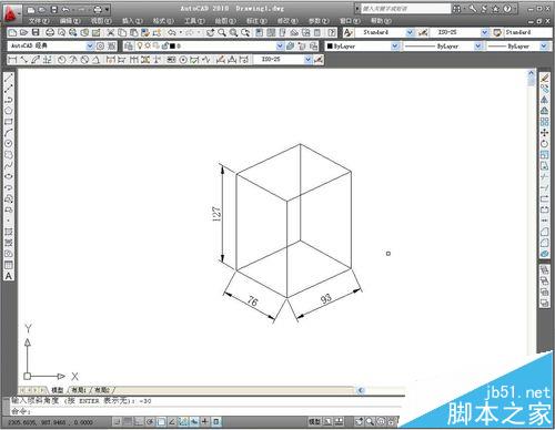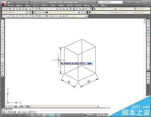 6、選擇后,點擊右鍵。此時命令行會出現“輸入傾斜角度(按ENTER標示無):”輸入需要傾斜的角度。如-30°,之后成功傾斜