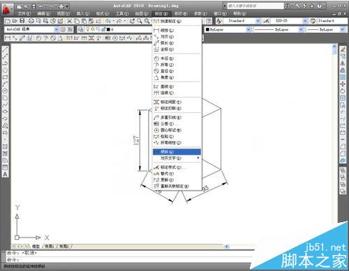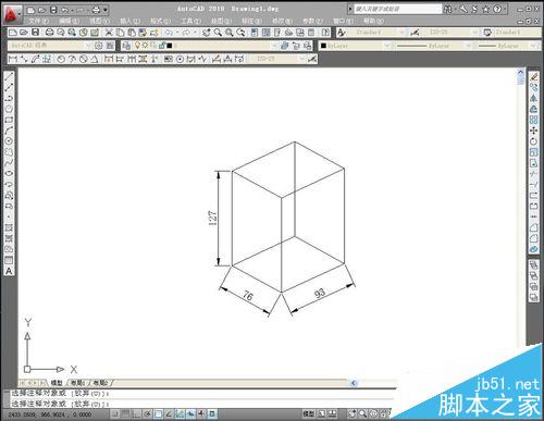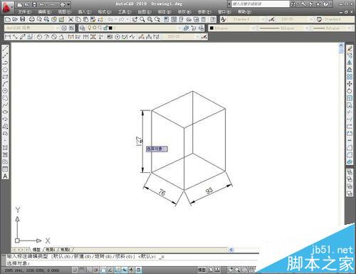 5、在命令行里面出現“選擇對象”,此時光標變成一個矩形框。然后選擇需要修改的尺寸,如長高度尺寸“127”
