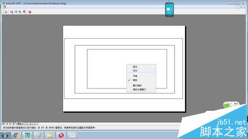 10、預覽發現圖紙選擇窗口完全OK,就點鼠標右鍵,出現菜單,選擇“打印”,OK,就能成功打印了。這里預覽時如果發現圖紙沒有選擇好,就再回到打印畫面,重新選擇要打印的圖紙范圍。