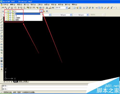 4、創(chuàng)建好后,返回繪圖頁(yè)面,當(dāng)想用創(chuàng)好的圖層時(shí),點(diǎn)擊圖層工具欄后面的下三角,然后選擇自己需要的線即可快捷繪圖。