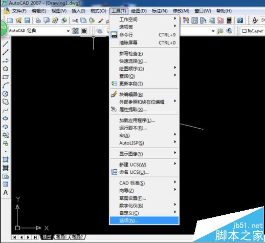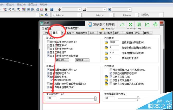2、單擊菜單欄里的“工具”,然后選擇“選項”,在彈出的對話框里,選擇“顯示”,然后在左下角調(diào)節(jié)十字光標的大小,如圖所示。