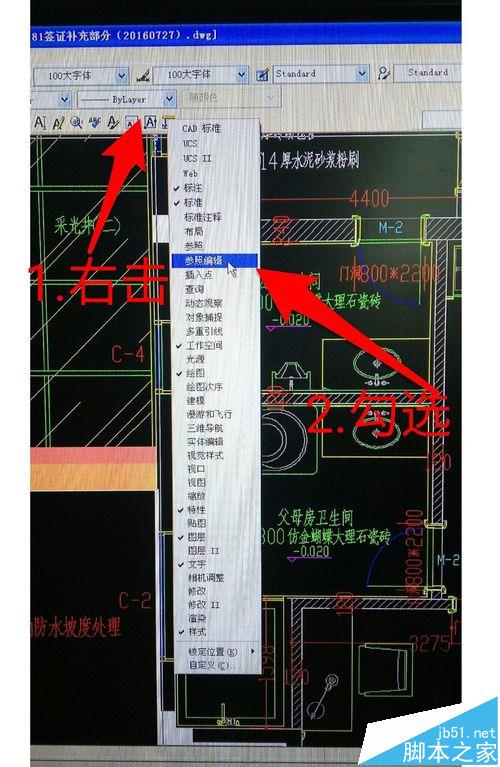 1、在命令行的命令按鈕上用鼠標右鍵單擊,出現下拉命令,勾選【參照編輯】,注意,在空白處右鍵單擊是找不到參照編輯的。