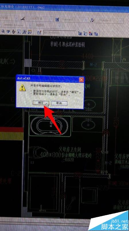 5、點擊如圖箭頭所示按鈕,彈出對話框,提示是否保存對塊所做的修改,點擊【確定】,保存之前所做的修改。