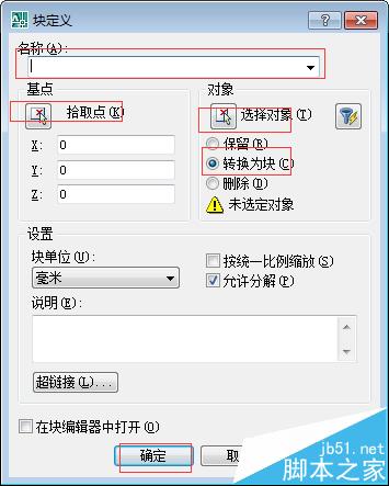 3、彈出寫入塊的窗口,在名稱上表明清楚是那種窗戶,點擊基點在屏幕上指定,然后選取圖形在屏幕上框選后右鍵單擊回到塊單擊確定。