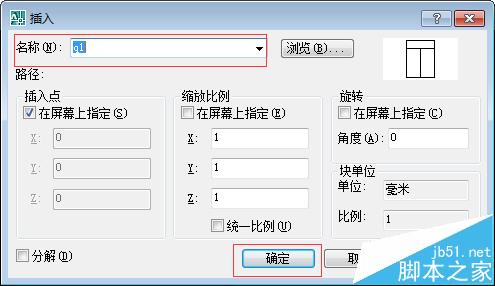 5、插入塊窗口,點擊瀏覽你寫入的塊,插入點選為在屏幕上指定,如果你需要塊旋轉(zhuǎn)在旋轉(zhuǎn)角度輸入角度。點擊確定。