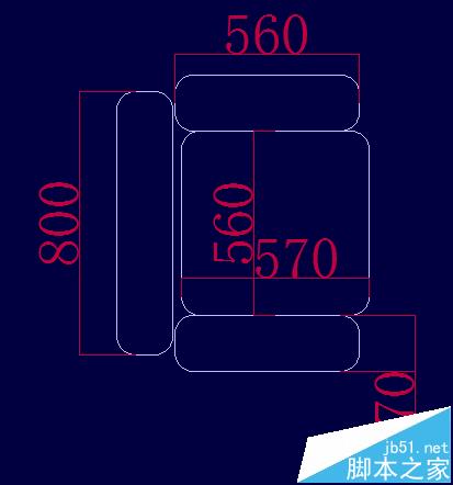 3、繪制沙發墊。尺寸為兩扶手的內徑。560/570*570.沙發墊與靠背要留點空隙。