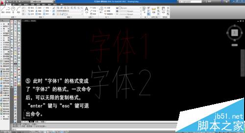 5、此時“字體1”的格式變成了“字體2”的格式,一次命令后,可以無限的復制格式,“enter”鍵于“esc”鍵可退出命令。