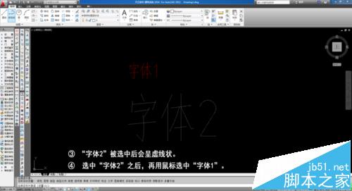 4、選中“字體2”之后,再用鼠標選中“字體1”.