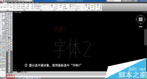 2、提示選中源對象,即用鼠標選中“字體2”。