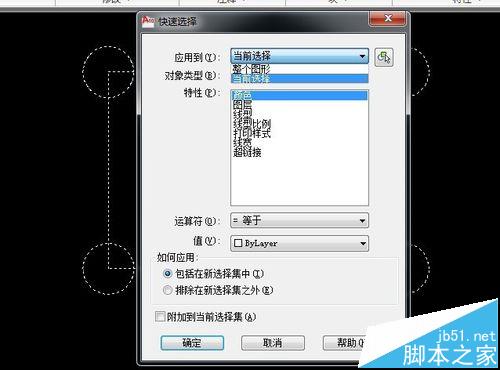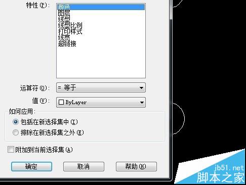 5、選擇特性,有顏色、圖層、線寬、線性比例等等。